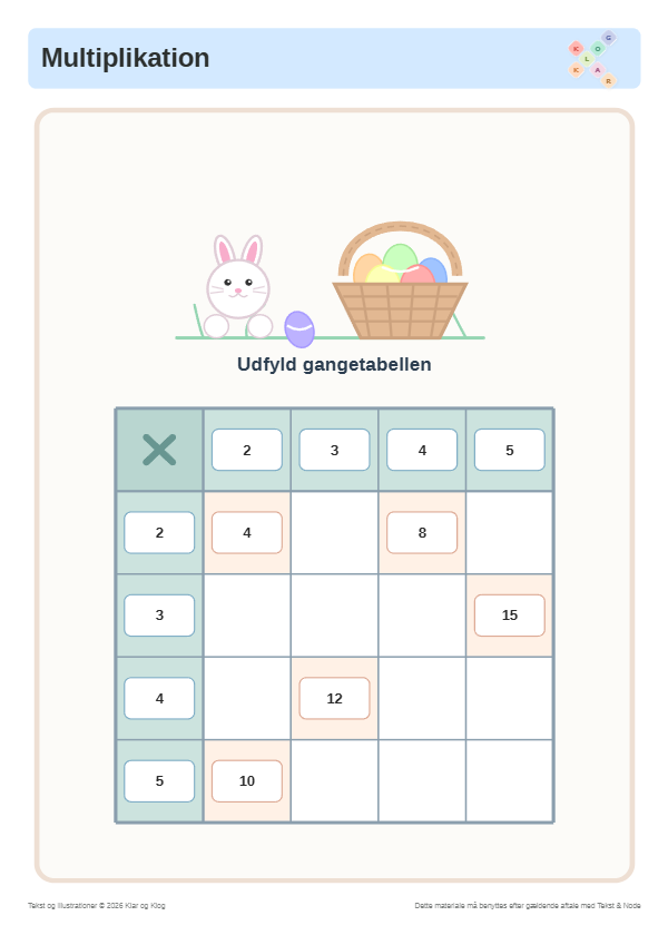 Multiplikation i påsketema via gangetabeller