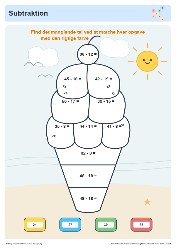 Farv isen ved hjælp af subtraktion i et sommer tema
